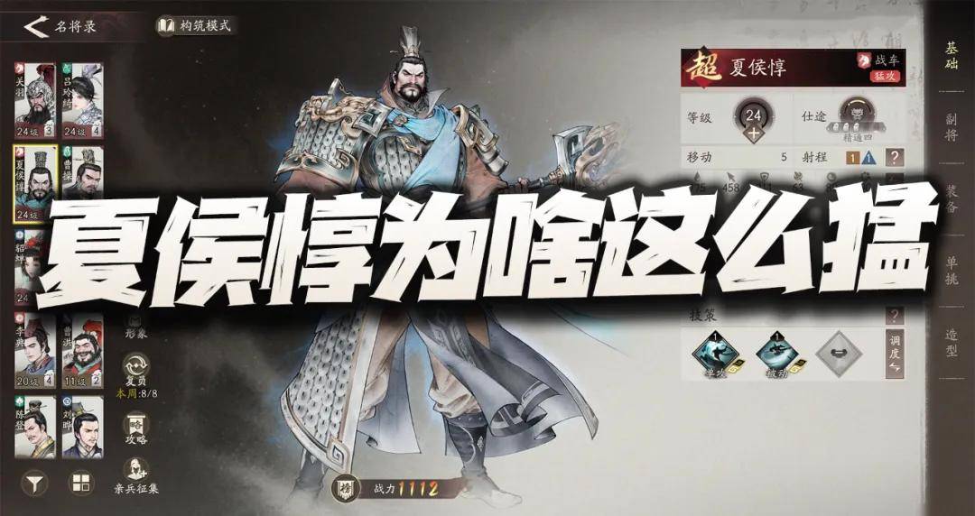 今天的攻略正式开启我们的角色详解攻略,首先第一位便是人人在开服后都会有,且极大概率都会去用的武将夏侯惇,维一可以负责任的告诉大家,这位角色不仅在开荒期间有不错的表现,即使到了游戏中后期他的强度也不会有多大的下滑,其最核心的原因便是夏侯惇有着优秀的技能机制和发展空间,接着咱们就来详解其中的逻辑。