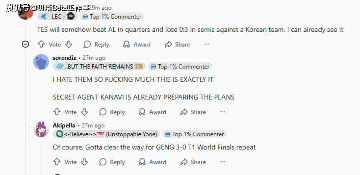 TES在S15全球总决赛瑞士轮BO3中,以2-1的战绩淘汰BLG,晋级8强。很快这场比赛也引发了大量海外网友们的热议,一起来看看他们的观点是什么吧!