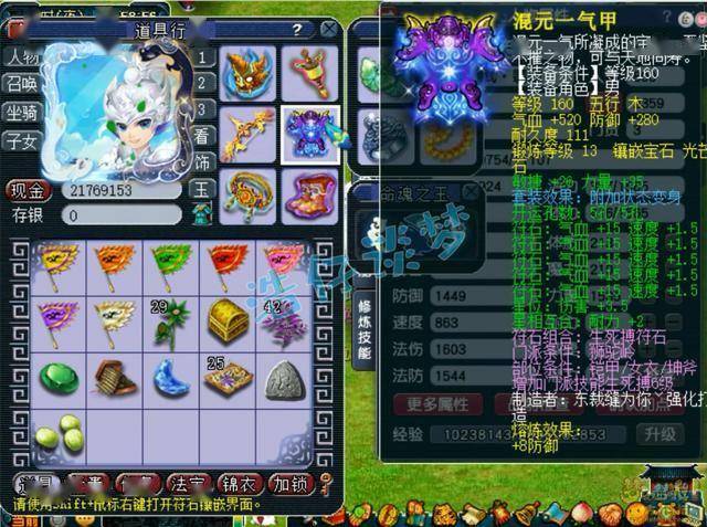 100级变身套铠甲,敏力双加61,打了13锻光芒石。