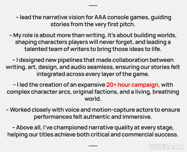 该项目由一支超过100人的国际化团队倾力打造,是继《归唐》之后,网易在高端主机游戏领域的又一重磅布局。报道援引LinkedIn上一位叙事作家的公开履历,首次披露了这款神秘新作的开发细节。