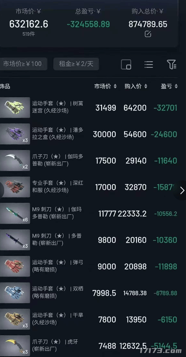 当然,崩溃还在持续,持续跌价加上恐慌形成的踩踏效应,导致皮肤价格仍在持续跳水,不少刀皮、手套跌价幅度达到80%,而且由于很多人只囤了这些手套和刀皮,实际亏的幅度要远超大盘跌幅。