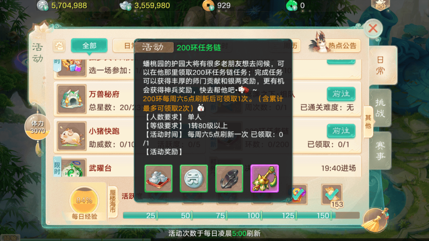 再算下日常保底,五环任务日入40万银两+50万师贡,大雁塔保底120万银两,其他任务300万银两,单账号日收益约480万银两(约12-16元)。这还没算上跑完200环,基础银两收益也有200万银两左右,七七八八算下来,一个月赚个一两千零花钱没问题的。