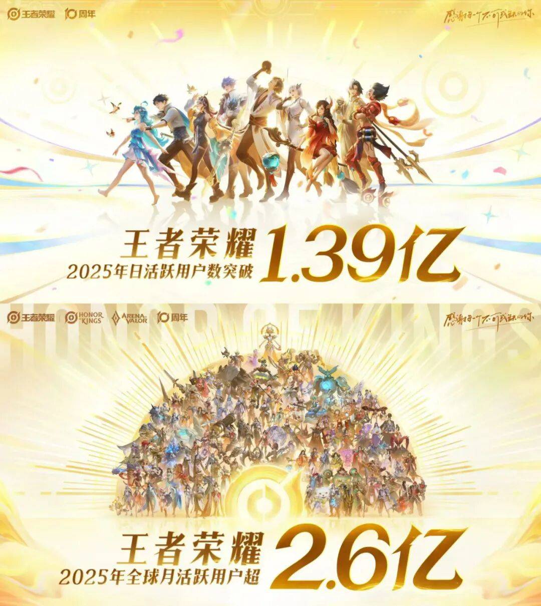 放眼2025年,能走过10年生命周期的产品并不是没有,但像《王者荣耀》这样拥有亿级DAU、长期霸占畅销榜TOP1的,仅此一家。现场上,官方同时公布《王者荣耀》今年的DAU突破1.39亿,全球月活超过2.6亿。