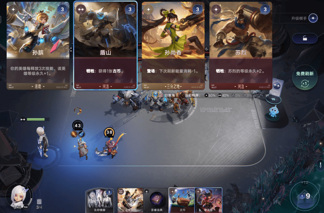 棋手本身也开始具有功能性。比如棋手孙尚香,可以亲自上场攻击,玩家能选择是强化她的单点狙杀能力,还是利用范围炮击来干扰战场;棋手“镜”的专属天赋,能让玩家在商店里买完一张英雄牌后,再次购买一张价格加一的同款,加快核心英雄的成型。