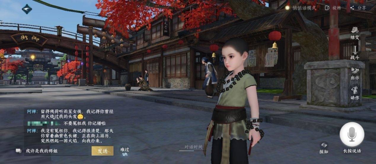 而且《逆水寒》手游里的智能npc都是有记忆、有思考能力的,玩家对npc做了什么他们都会记得。有玩家因为用火烧npc的头发而被npc阿禅记仇了,就连玩家穿什么衣服npc都记得清清楚楚。