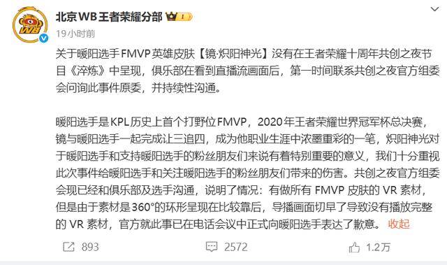 粉丝自然是很难接受,WB方面进行了反馈,制作了,但因为导播的切屏失误,没放出来。