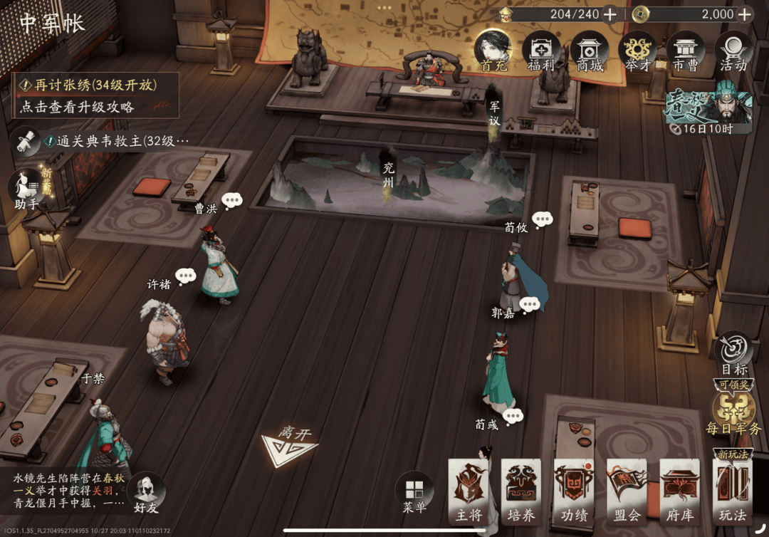 这还没完呢。游戏还有建筑系统,直接关系到一些核心功能的解锁,比如说打造装备,副将数量等等。