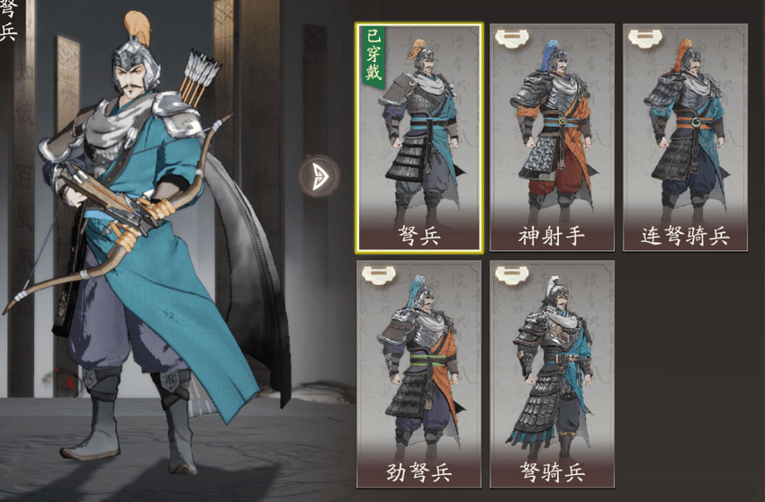 结果这游戏每个角色不同的职业进阶,都有着对应5套不同的衣服和武器,如果是骑兵或者军需等带有兵种,还会有坐骑、战车、推车、工程的不同。