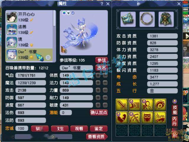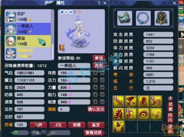 9技能高连血攻琴仙,攻资养出了加号,赐福了4个超级技能,难度任务与PK通用的攻宠。