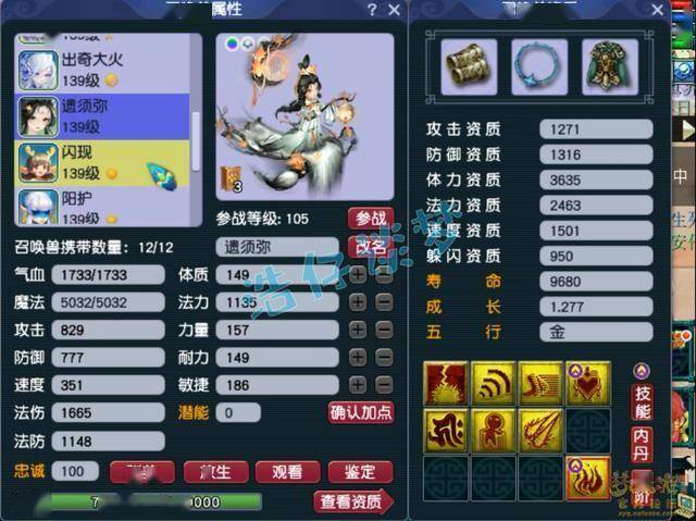 8技能敏须弥涂山瞳,普通任务用的效率法宠。