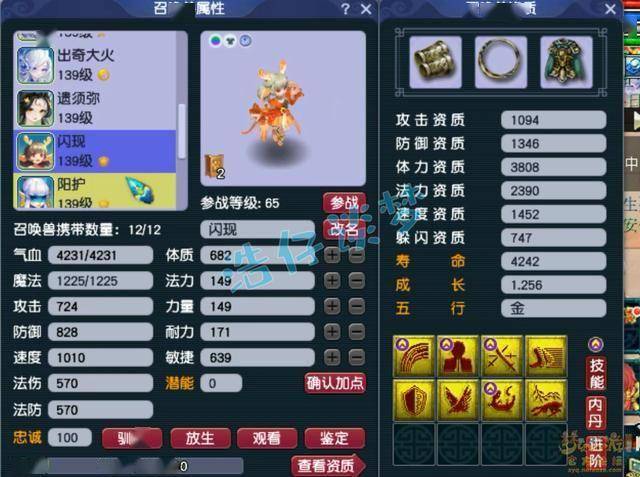 8技能千速血宠龙鲤,同样是一只4赐福的宝宝。