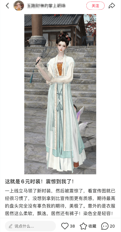 更离谱的是,游戏连时装都卷出花——6块钱的国风小裙子,比其他游戏648的特效皮还精致。上线首周直接卖爆,后面更是时不时更新6元时装,玩家们也是很喜欢6元品质,如今这波“亲民路线”直接杀到海外,不要太爽。