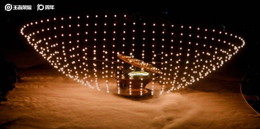 十周年期间,王者玩家通过自己的ID点亮自己的本命英雄,共同构成一幅由124位英雄组成的定格留影。在共创之夜的现场,《王者荣耀》也携手北京冬奥会开幕式视效总监、奥林匹克主火炬总设计、黑弓创始人王志鸥,共同打造了“十年一刻”艺术装置,将留影中所有的玩家ID,以数字化形式注入装置,留下属于所有人十年一刻的限定记忆。