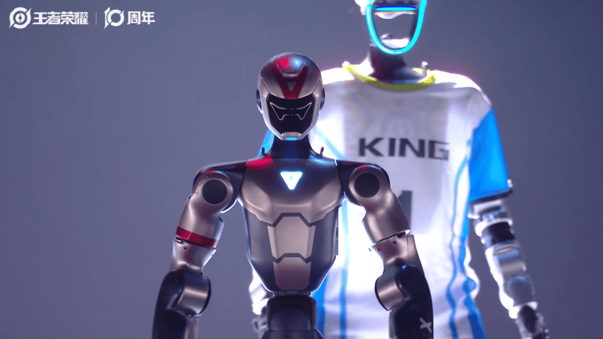 同台的G1人形机器人战队,化身游戏中的红蓝小兵与马可波罗等角色;宇树GO2四足机器人也惊喜登场,分别cos成游戏中的“猪怪”与“狼怪”。这些表演既反映了王者十周年盛典官方对于节目的设计用心与精细,是游戏与科技在多领域融合的尝试,也展现出宇树科技在多样化机器人形态与互动应用方面的全面技术布局。