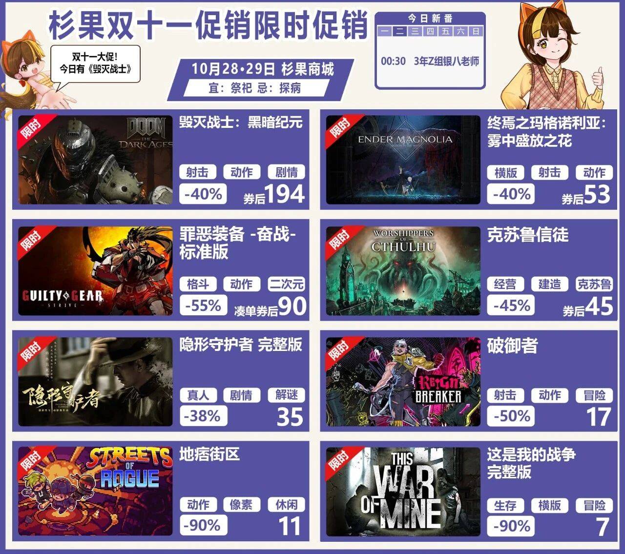 杉果双十一特惠限时闪促活动火热回归,海量游戏给出“骨折福利”,搭配优惠券后每款都是新史低!