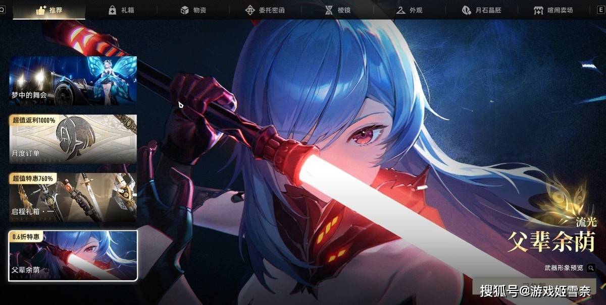 打开商城,推荐界面是卡池的赛琪时装,月卡和星球大战的光剑,除去售卖的强化类道具之外,各个单品和礼包也都是外观相关,跟进了服装店一样,其中不乏一些有趣抽象的创意,比如说咸鱼大剑和头饰一个6,总而言之只卖外观这一点二重螺旋确实是做到了,基本上所有的氪金点都在服装这里搞定了。