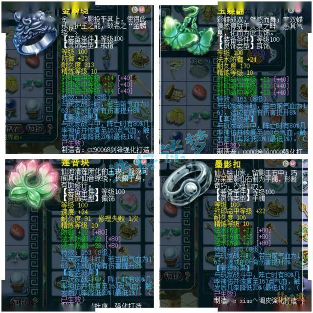 戒指和耳饰下排都是三封印,配饰下排双法防御一防御,手镯下排三法防,全部打了10锻星辉石,特效都是8级163。