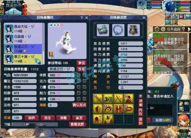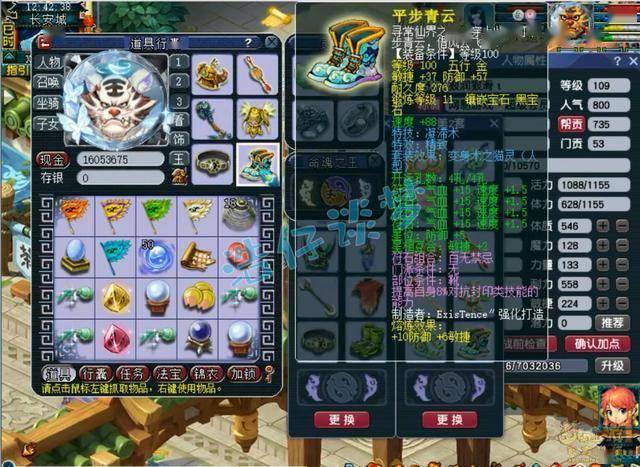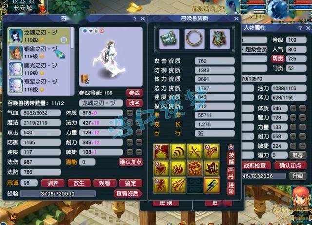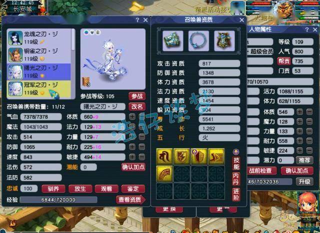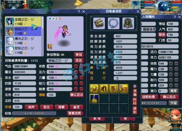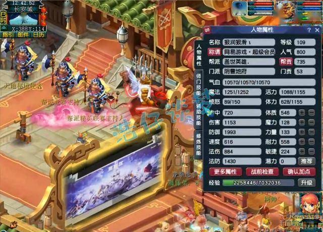 109级地府没打临时符的面板属性,打符之后能有2200左右的防御,12000左右的气血,属性还是非常不错的。