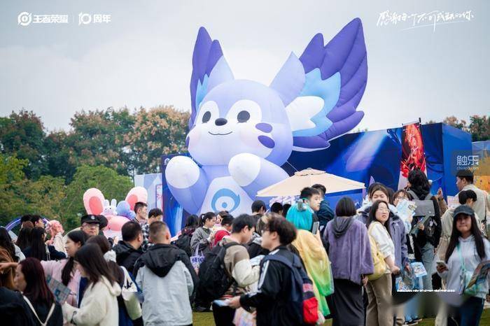 我在《王者荣耀》嘉年华上四处闲逛。也和一些玩家聊了聊他们对这款游戏的感受——所有玩家的态度都非常认真,他们会带着点骄傲和羞涩的神情地告诉我,自己已经玩了这款游戏3年、5年,甚至更久。有的玩家会对我念出某个英雄的台词,告诉我这个英雄的台词在很多时候激励了她。官方准备了一条面向十年玩家的纪念品领取通道,从开放入场开始,那条通道就排起了一条非常长的队。