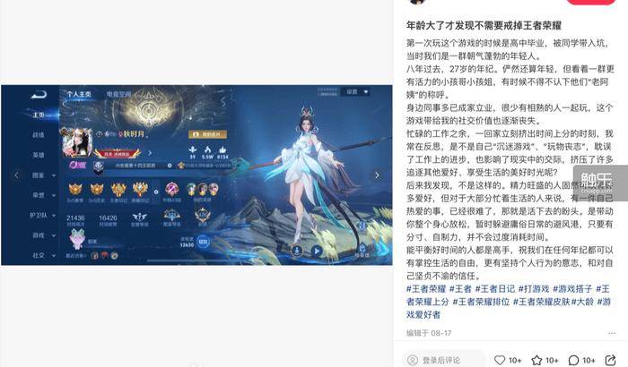 碎玉也有类似的感受。本科毕业后,一起玩游戏的朋友也在变化,队友从舍友,慢慢变成了新的朋友、新的同事。他对我说,他觉得《王者荣耀》最好的一点在于,玩它的人始终在变得越来越多,几乎任何人都会玩它、都很熟悉它,哪怕换了新的环境,“不管在哪儿工作,都有人可以一起玩。”