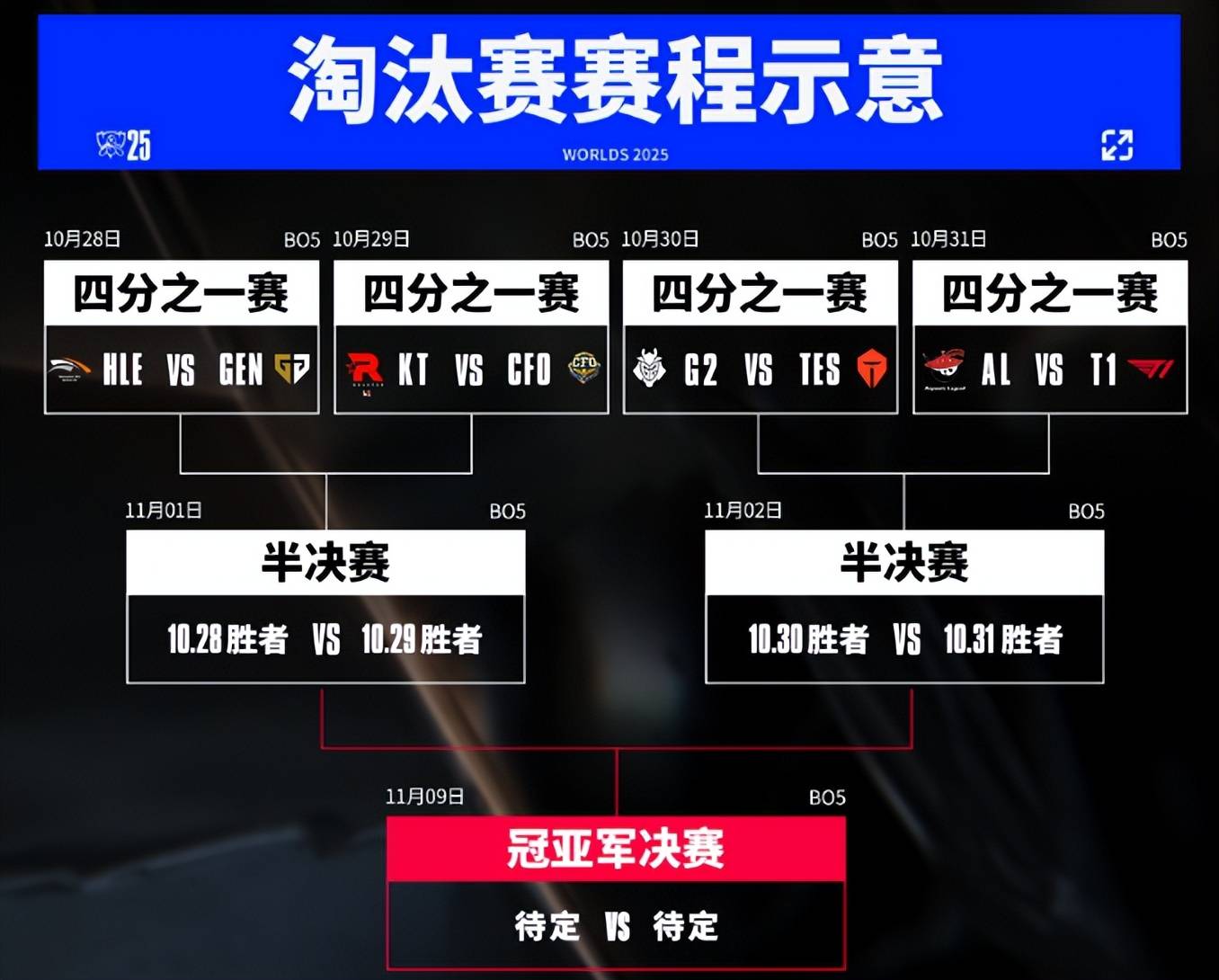 北京时间10月30日至31日,上海S15全球总决赛八强赛将迎来两场足以左右赛事走向的焦点对决——TES迎战G2,AL直面T1。这两场较量不仅关乎两个晋级四强的名额归属,更直接牵动着LPL与LCK两大赛区的实力天平,堪称本届赛事的“命运分水岭”。