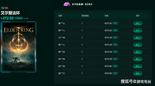比如以《艾尔登法环》举例,我们只需要在steamcici官网首页搜索游戏名,然后即可找到对应的游戏页面,点击进入后即可看到目前游戏的最低价格,并且还有和史低价格的对比,让大家确认自己购买的价格是否划算,玩家只需要确认订单扫码支付,然后等几分钟,就可以在steam中体验到这款游戏了。