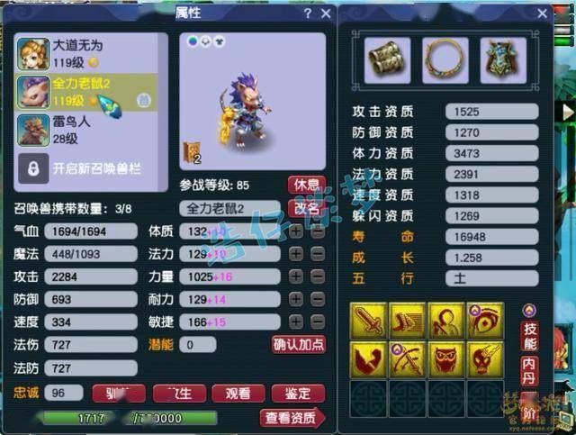 8技能高连接近全力加点的鼠先锋,攻资成长很不错,赐福了两个超级技能,也是竞速任务用的效率攻宠。