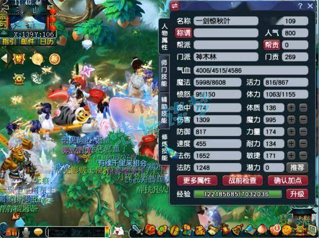109级神木林没打临时符的面板属性,打符之后法伤能达到1800左右,对109级来说已经非常不错了。