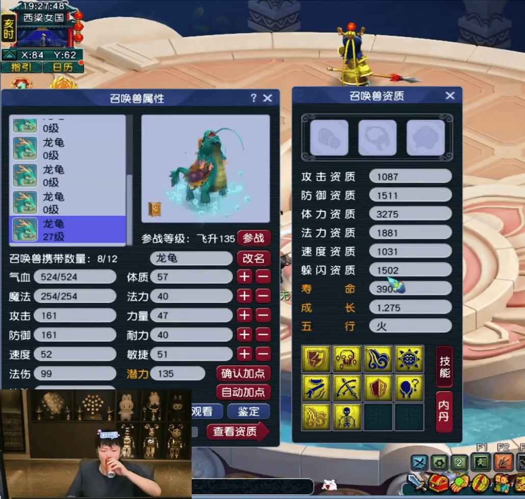 随后他趁热打铁,果断为这只龙龟拍上兽诀。最终打成了上图的形态——3本蓝书均对PK有帮助,足以作为过渡宠使用很长一段时间。