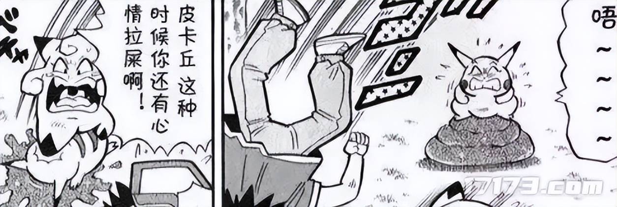 而另一部更早的宝可梦漫画《宝可梦欢乐祭》里,更是清一色的屎尿屁和黄色笑话,皮卡丘更是其中典型的“拉屎担当”。