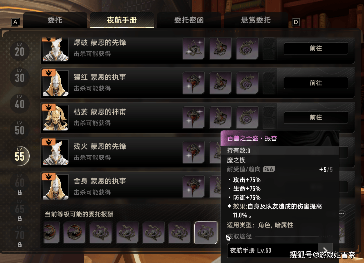 开荒期顶重要的事情自然是主线任务,随着主线任务发展才会逐渐解锁模组卡以及各种功能,别以为这是废话,因为最重要的是我们需要刷取的委托密函的获取基本都在主线过程中给,没有材料就开不了委托密函也没办法解锁新角色新武器,还有高等级的紫色橙色魔之楔必须要有一定的历练等级才能解锁,而获取历练等级最快的方法就是升主线,否则只有蓝色的魔之楔用直接慢人一步。