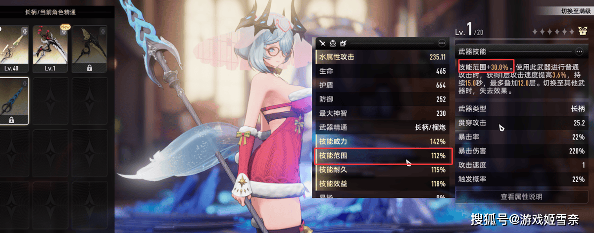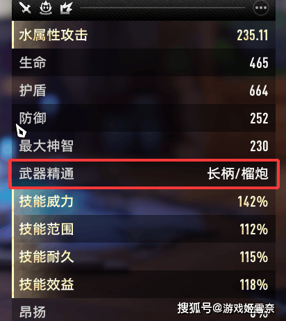 武器选择要看两方面,一个是角色的武器精通,通过角色武器精通筛选出角色需要的武器类型,然后再去全武器里面找,比如说我这个是长柄精通,那就在长柄武器里找需要的词条,需要的词条就是角色属性的金色词条,也就是说我们只要找这个角色精通里有提升需要的词条的武器即可。