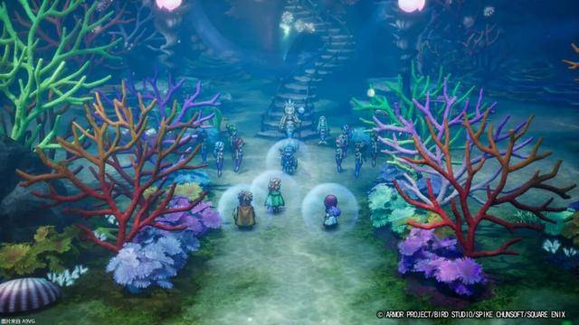 说到音效,本作与DQ3重制版一样由早坂将昭担任制作人。早坂将昭早在第一部HD-2D作品《歧路旅人》的开发中就已经深度参与了声音部分,而他对于声音表现的追求更是在DQ3重制版与DQ1&2重制版中体现得淋漓尽致。重制版除了交响音源以外,在环境音效上有着全方面的强化。在河边能够听到水潺潺流动的声音、微风拂过树叶、吹起风沙、划过海浪,乃至沉入海底时那种空旷寂寥的感觉,在环境音效的表现上可说是可圈可点。这些细节不断累加,最终量变产生质变,对玩家在游戏世界中的沉浸体验带来了巨大的影响。