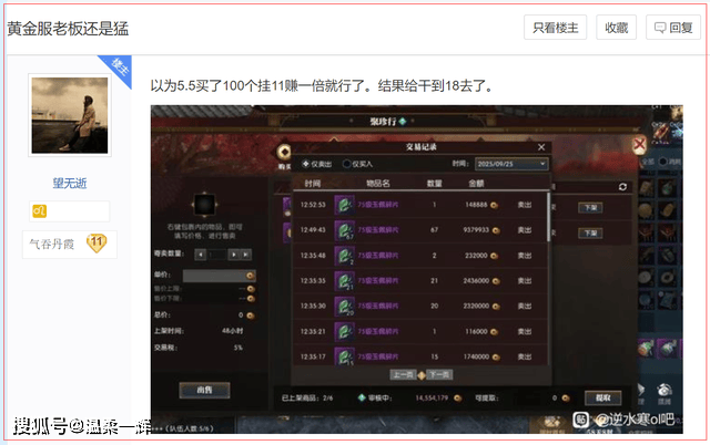 特别是《逆水寒》在黄金服开启“长青计划”,宣布官方托底游戏经济后,相当于为所有玩家上了一重保险,也因此不仅仅是职业“搬砖党”,即便是大多数的普通玩家都借助黄金服赚到了钱,不乏有人做到了月入上万。