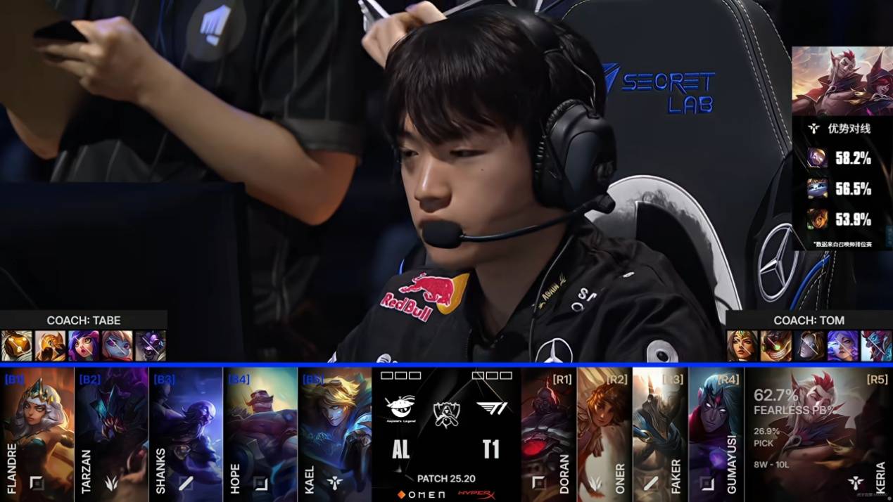 S15全球总决赛的焦点对决T1与AL的首局比赛中,AL在上路雷克塞取得较大优势的情况下,小龙运营出现失误导致节奏倒向T1,随后Hope出现致命失误局势进一步恶化。