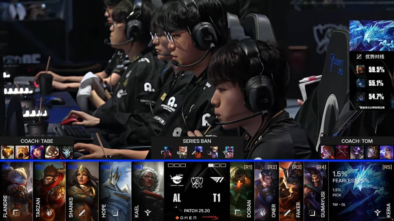 个人认为这局比赛AL的战术调整是对的,第一局比赛一上来选择和T1拼运营局,结果被对手拿下,第二局就直接开杀,选出节奏能力更强的阵容来不断地先手开团施压。