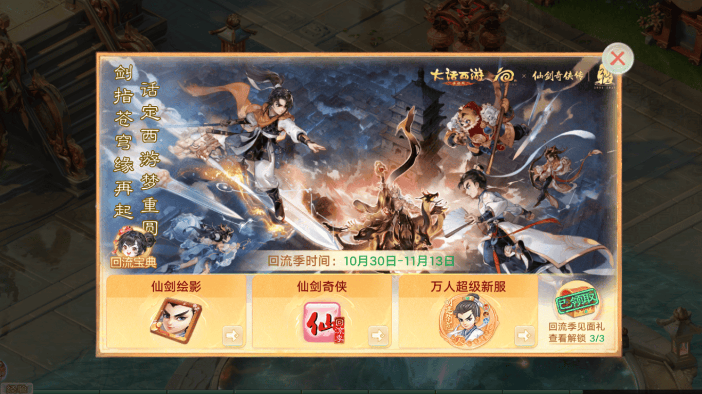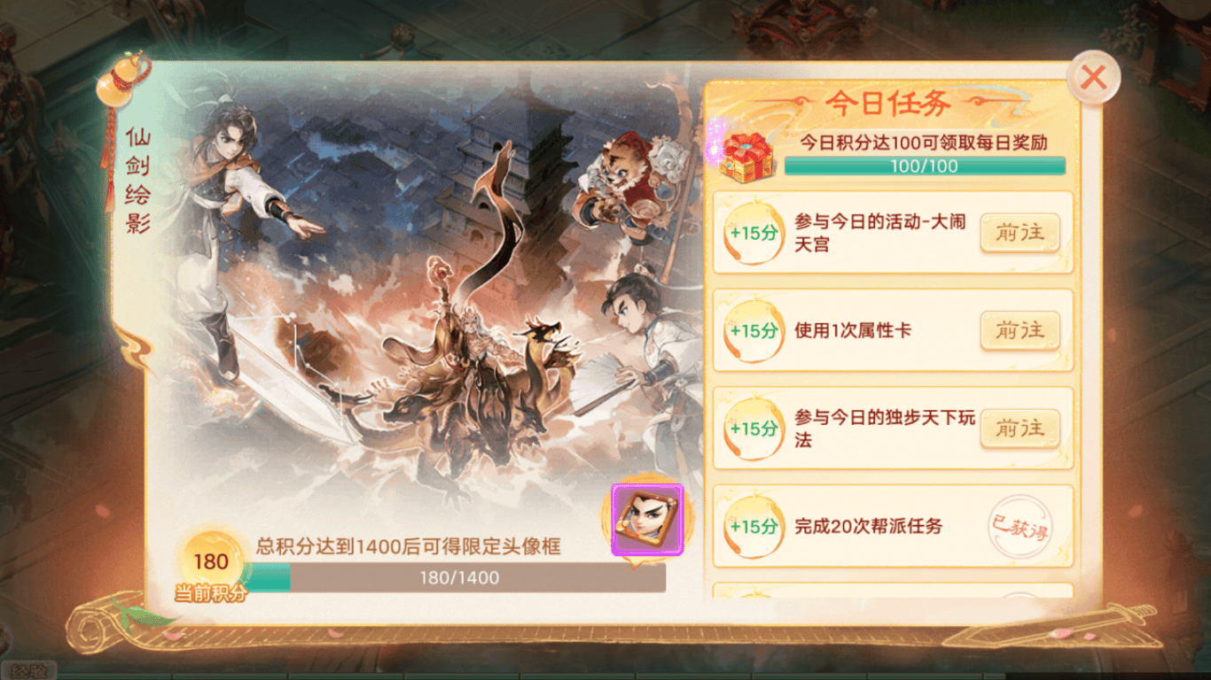 找到回流大使对话,还能领取回流季见面礼,仙剑绘影每天完成日常可以领取奖励,总积分达到1400之后可获得限定头像框,逍遥仙葫头像框,回流季时间是10月30日-11月13日,大家可千万不要错过了。
