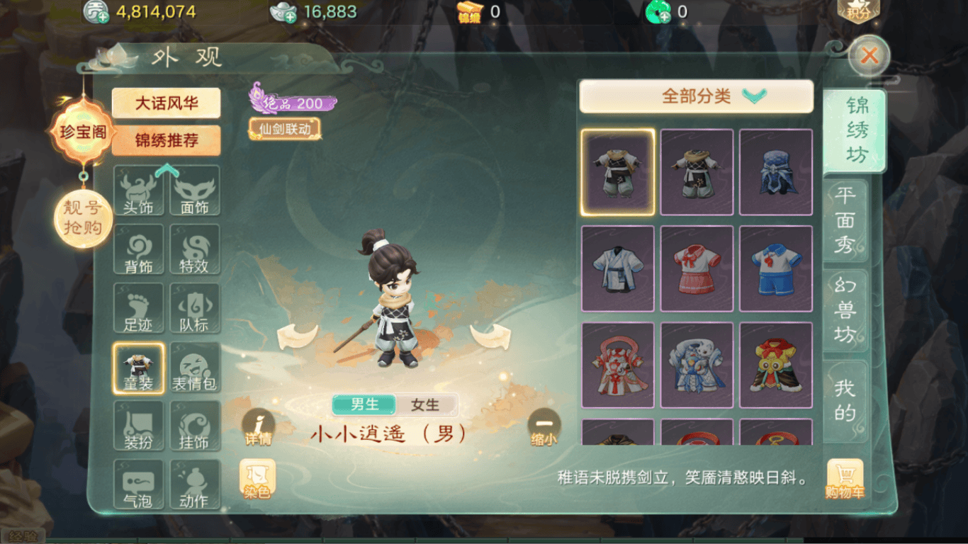 可可爱爱的童装,终于可以预览效果了,还可以根据性别穿戴,放大童装查看效果,就拿最近的小小逍遥来看,上身效果真是非常不错。以前全靠盲猜,现在可以清楚预览了。