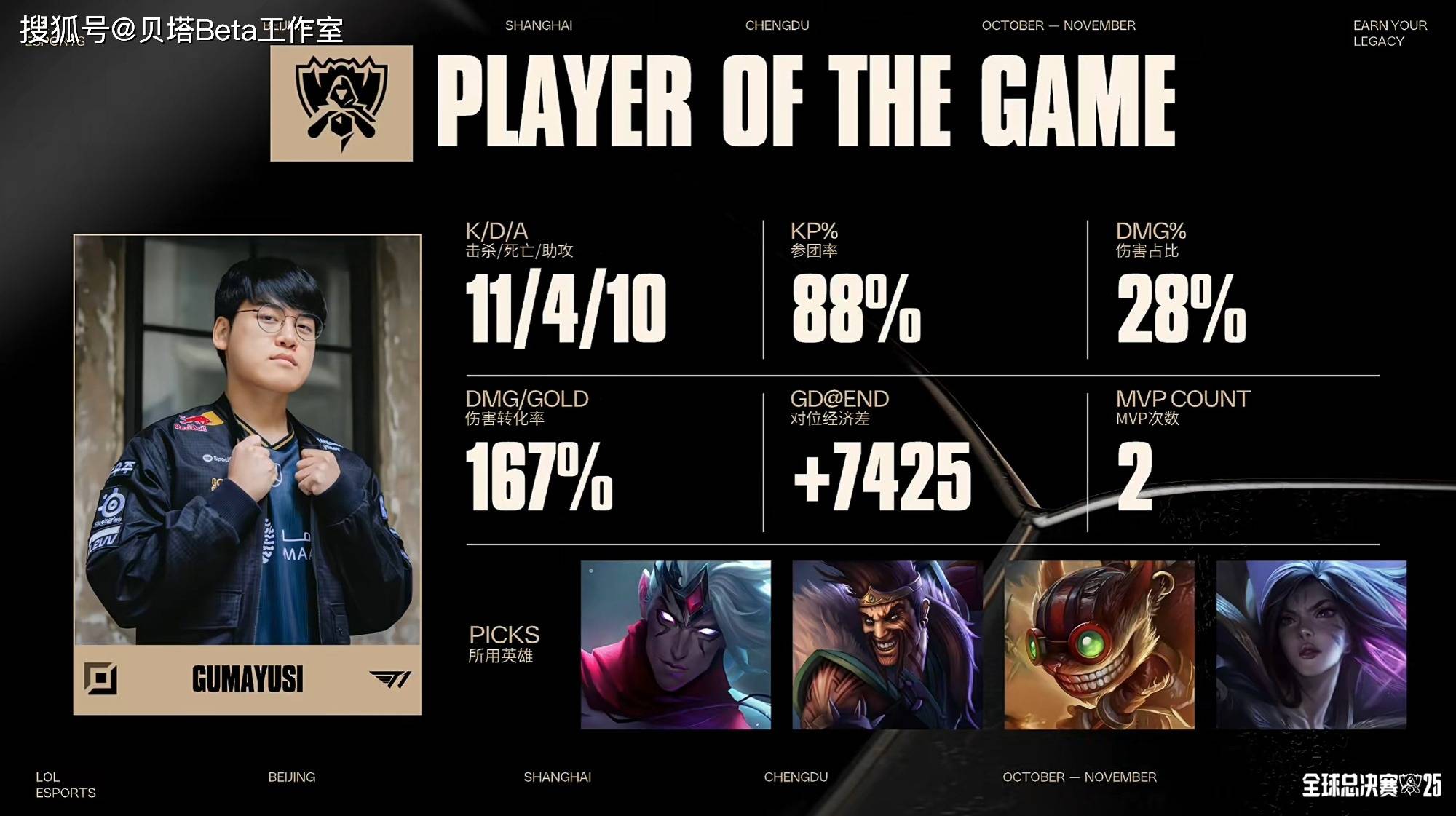 中期20分钟Hope的EZ突然E脸输出,被keria洛E控住,T1配合击杀AL下路双人组,虽然Tarzan琪亚娜R三人,换掉Oner潘森,AL拿下厄塔汗。27分钟双方争夺小龙,圣枪哥挖掘机绕后被Faker岩雀防守击杀,随后Faker岩雀大招封路,shanks瑞兹被秒,T1拿下火龙魂后追击团灭AL,又拿下第一条大龙。最终后期34分钟双方小龙坑混战,Gumayusi韦鲁斯疯狂输出击杀AL下路双人组,T1轻松打出0换5后,拿下第一局的胜利。首局伤害最高的是Gumayusi韦鲁斯。