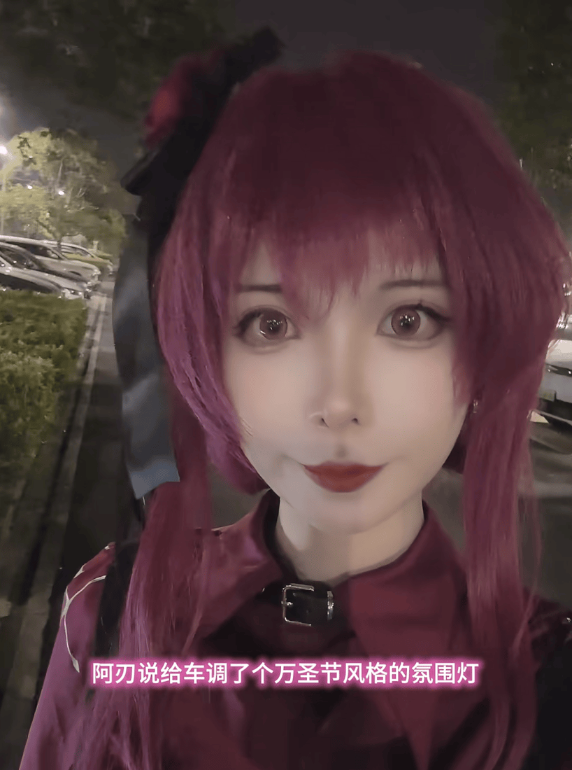 有玩家组团COS星核猎手,还按照游戏中的设定让刃充当司机,并且在车上准备了万圣节风格的氛围灯。等镜头扫到刃的身上,绿光打下来,有中式恐怖那味了,这氛围确实拉满了。