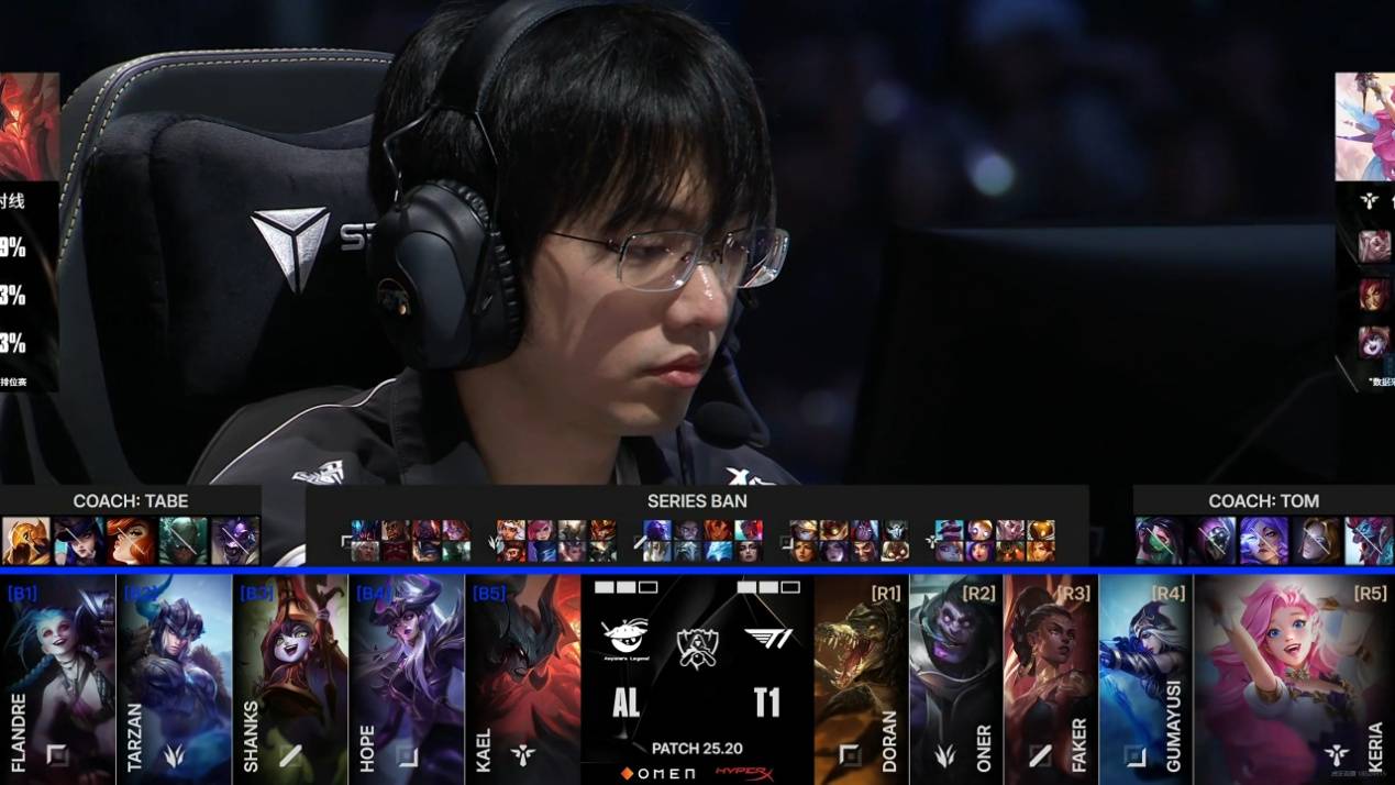 随后关键一波Oner野区给机会被AL一套直接秒杀,后AL追击再杀一人开启大招,T1选择三打五被AL逐个击破打出团灭,但失去了打大龙的机会。