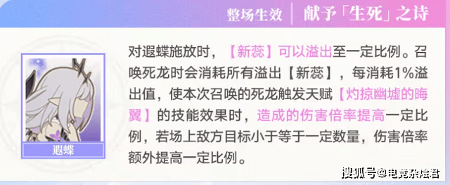 昔涟给黄金裔的BUFF都非常夸张,例如可整场生效的白厄,他在获得昔涟的BUFF后,将不会结束变身,能一直打下去。还有遐蝶,在获得BUFF后,她的“新蕊”可以溢出一定比例,这样不仅可以让死龙的伤害提升,也能缩短遐蝶再次释放大招的需求。