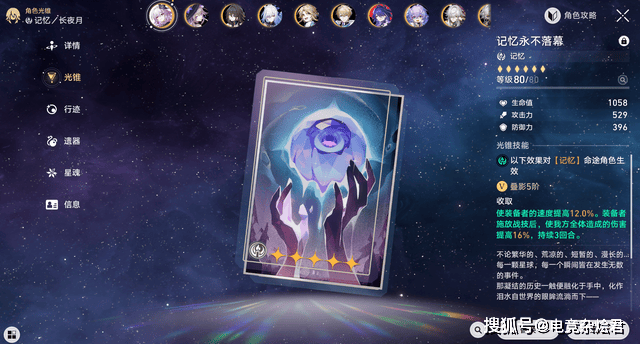 光锥方面,昔涟并非专武不可,长夜月专光、风堇专光、黑塔常驻精5光锥“记忆永不落幕”以及4星光锥“胜利只在朝夕间”都是不错的选择。