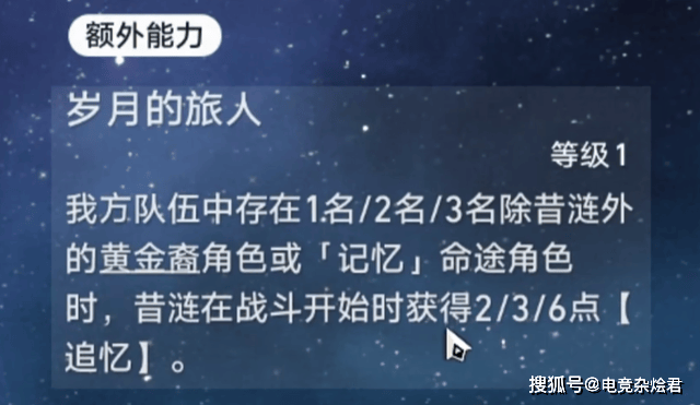 如果大家选择抽取昔涟的2魂,2魂可以让昔涟在进战后立刻获得12点追忆,再加上队伍内的黄金裔和记忆角色给的追忆,昔涟是可以在一回合内进入变身状态,彻底解决了昔涟变身慢的问题。