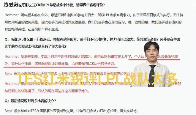 比赛结束之后,tes战队的主教练红米也是在采访环节中提到了lpl赛区目前存在的最严重问题题,他表示,目前lpl赛区由于行动较远,频繁移动选手,不仅时间紧,体力消耗也很大,实际用于可训练的时间大幅减少,而且战队数量实在太多了。个人认为,如果战队数量适当减少,提升队伍质量,这样既能够保证训练质,也能够增强与lck的竞争力。说实话,他的这个点应该是很多粉丝都非常期待的,但是联盟官方却不这样想,毕竟战队数量越多,他们收取的费用也会越多。