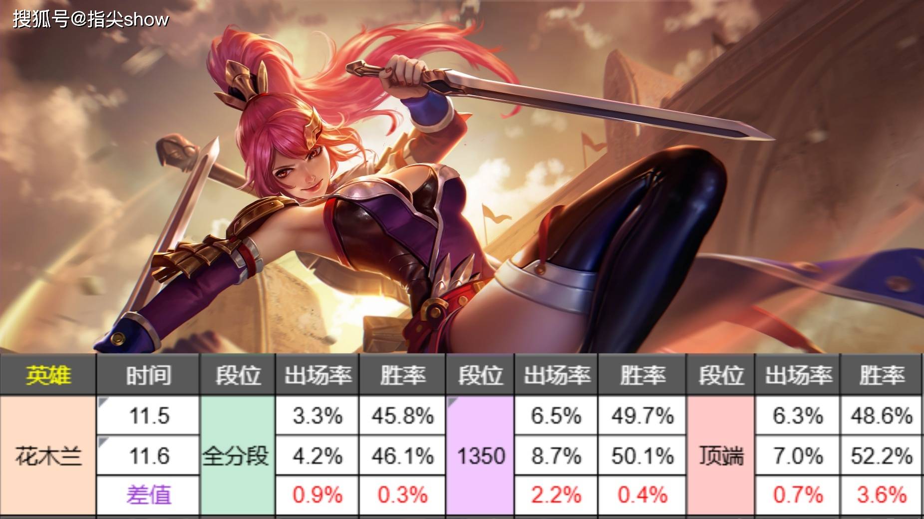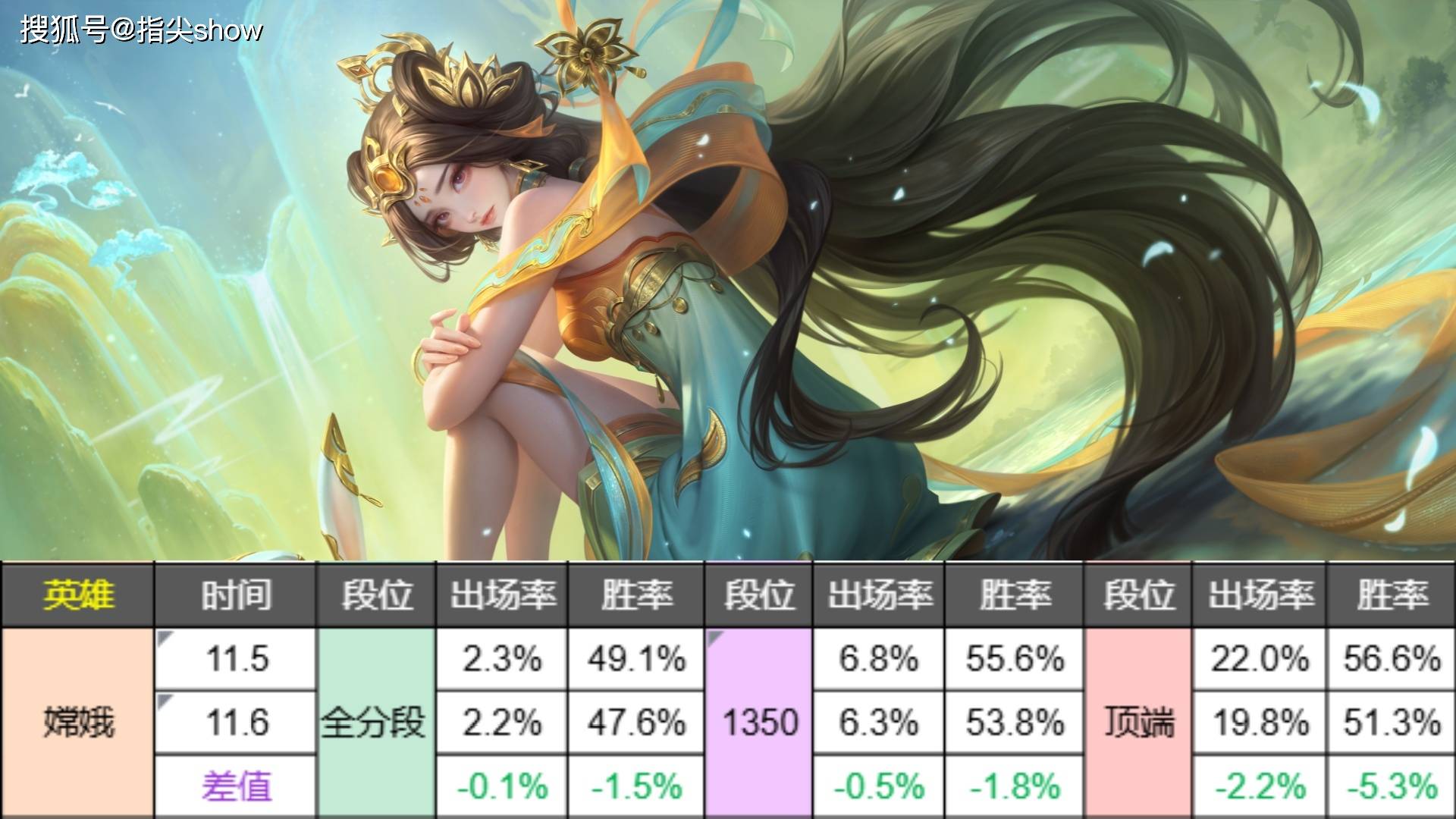 原创 11.6英雄调整后数据对比!嫦娥胜率暴跌5.3%,花木兰涨幅最高
