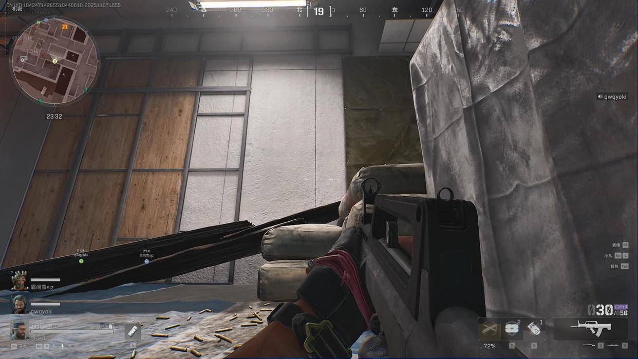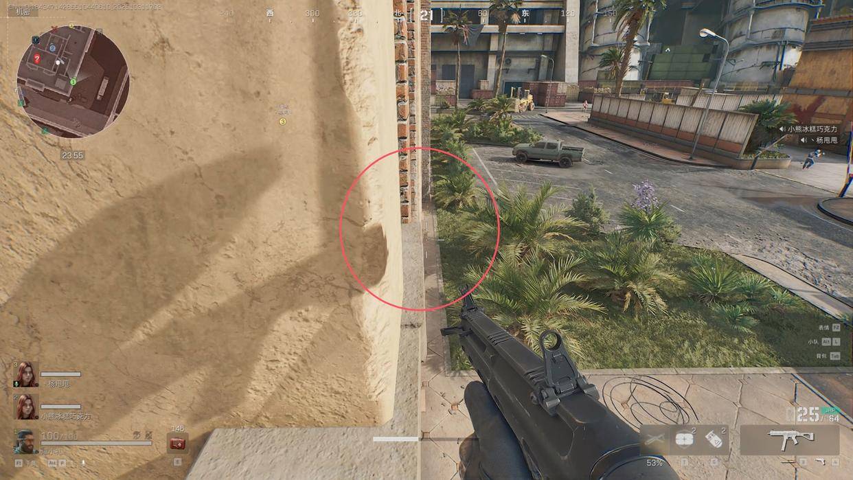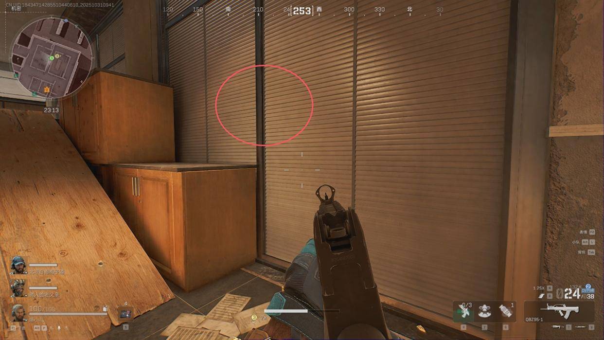 第一个:办公楼缝隙,这个点位最恶心的地方,是直接可以架死对面东楼跑过来的人,因为这个地方露出去的面积特别小,如果你不认真去看的话,是很难发现这个地方的,最关键的,哪怕对面发现你了,跟你火拼,也大概率拼不过去你,因为这个点位有个硬核的地方,就是刚好卡死在这个点位上,你打也打不到。