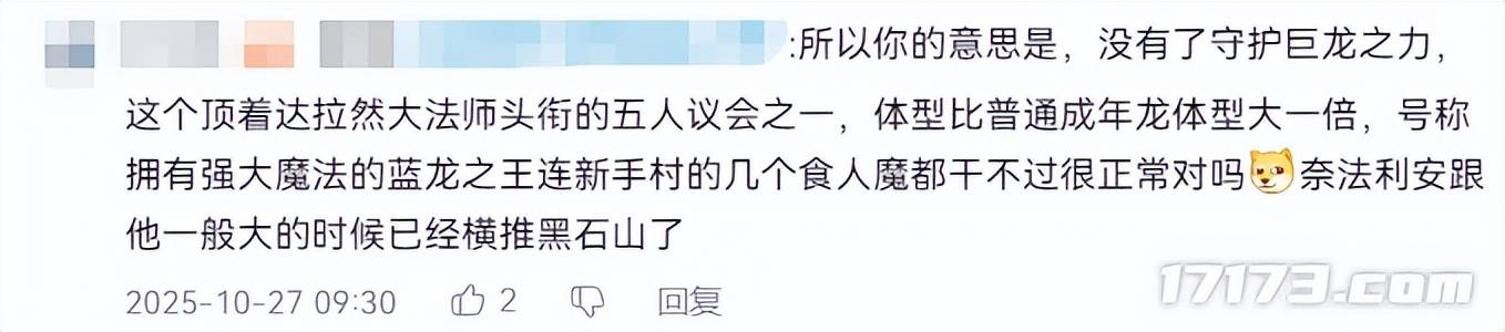 但话又说回来了,按照暴雪时不时就毁角色的惯例来看,早点让新手认清这些守护巨龙“战五渣”的实力,或许也能帮他们对后面奥蕾莉亚跟萨拉塔斯互相扯头发的发癫剧情,在心里提前有个底。