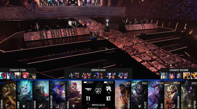 2025英雄联盟全球总决赛冠亚军决赛T1 3-2击败KT,T1夺得S15全球总决赛冠军。