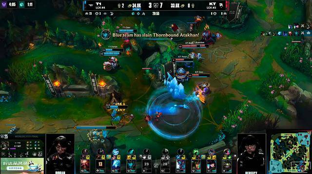 T1快速rush掉厄塔汗,后续团战T1直接将KT团灭,小龙也被T1拿到。T1依靠着优势领先,一举将KT击败,T1达成三连冠成就,夺得队史第六座全球总决赛冠军。